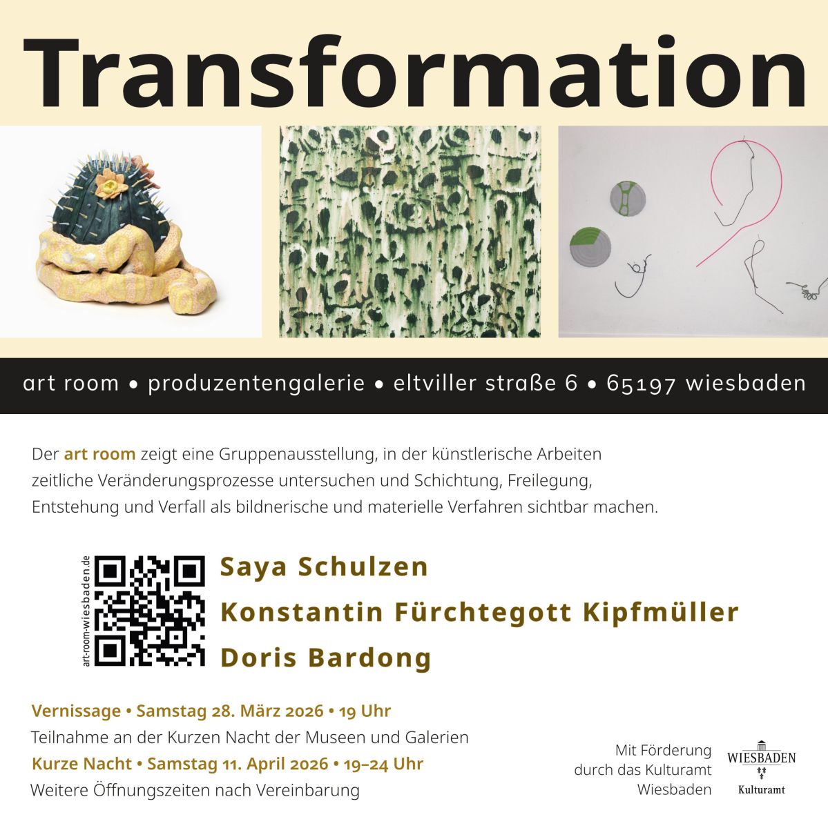 Am Samstag, 28.03.2026 findet die Vernissage für die Ausstellung mit der jungen Künstlerin Saya Schulzen statt, die gerade ihr Kunststudium an der Hochschule für Gestaltung in Offenbach erfolgreich abgeschlossen und dem Studenten der Hochschule für Gestaltung Konstantin Fürchtegott Kipfmüller. Ich freue mich sehr, dass beide mit mir zusammen ausstellen. Wir nehmen auch an der Kurzen Nacht der Museen und Galerien 2026 am Samstag, 11.April 2026 in Wiesbaden teil.